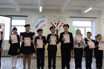 17 мая в нашей школе по итогам конкурса «Ученик года 2019» прошёл праздник «За честь школы». В актовом зале школы много гостей: учащиеся и их родители, заместитель Главы администрации Восточного сельского поселения Патрушева О.Л., представители культуры Форносова Н.Ю., Швайбович И.Ю., председатель совета ветеранов посёлка Нагаева Н.Л., тренер команды волейболистов Жирохов С.Д. Поприветствовала и поздравила с праздником всех присутствующих директор школы Журская А.В.