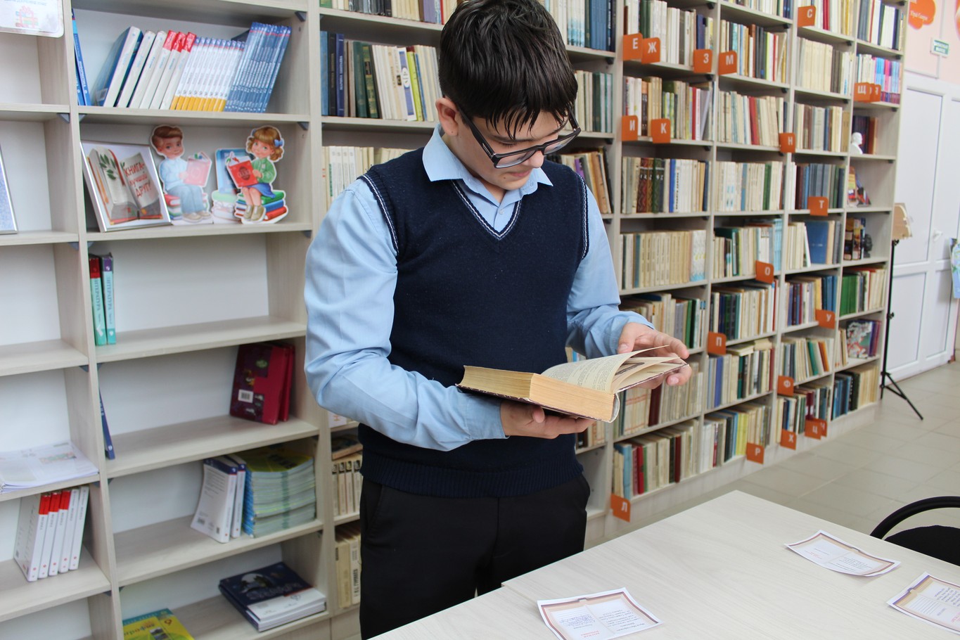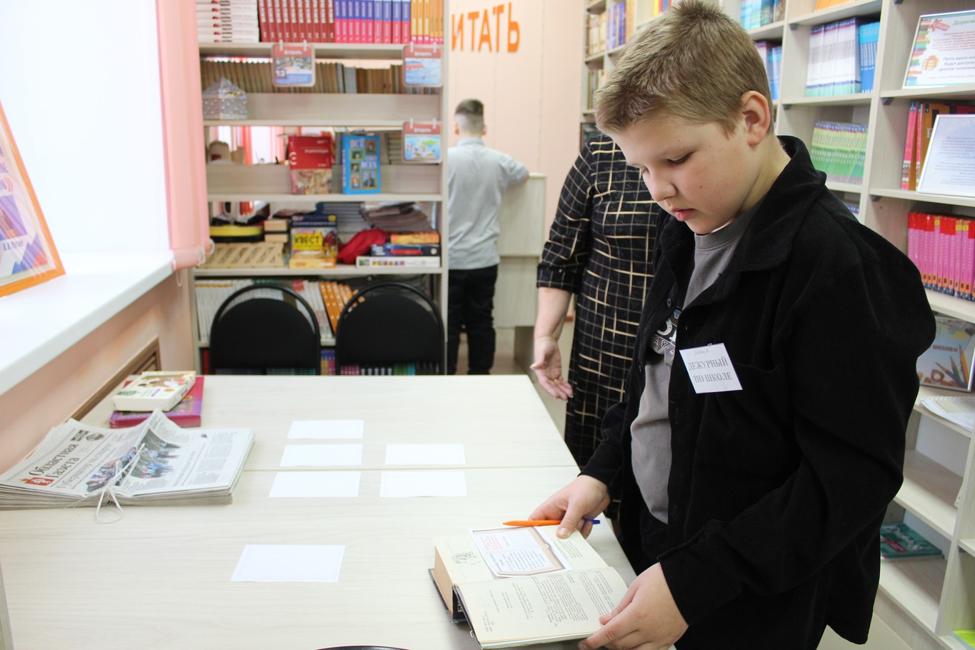 Ребята постарше, обучающиеся основной школы, отправились в захватывающее путешествие по родному школьному библиотечному фонду в рамках квеста "Книжный следопыт: Единство народов России в книгах". Им предстояло пройти настоящий книжный детектив, находя нужные издания по названиям и авторам, а затем, словно настоящие литературоведы, составляя аннотации к книгам. Каждый участник, успешно справившись с заданием, делал селфи на фоне своей находки, запечатлевая момент своего книжного открытия.