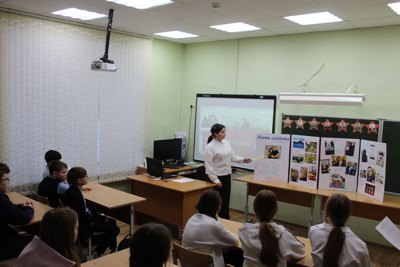 Обучающаяся 8 класса, Ангелина Скобелева, увлеченно занимающаяся музейным делом, представила обучающимся из 7 и 8 классов проект "Мать героя". Её рассказ о героической семье Бакиных, чьи сыновья и близкие родственники сегодня отстаивают нашу Родину на передовой, заставил задуматься каждого. Это не просто слова – это история жизни, пример безграничной любви и веры.