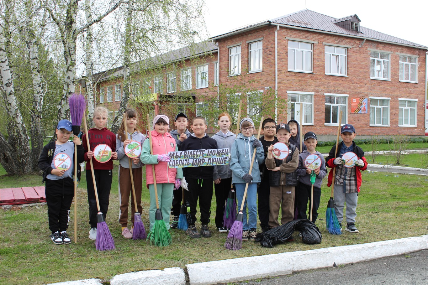 В этот день обучающиеся, учителя и родители (законные представители) объединили усилия для того, чтобы сделать школьную территорию и территорию обелиска павшим воинам в ВОВ чище и красивее. Мы собрали мусор, высадили цветы, побелили деревья и тротуарные бордюры и обсудили важность заботы о нашей планете. В преддверии празднования 80-летия Победы в Великой Отечественной войне на школьном дворе были размещены праздничный баннер и праздничная символика.