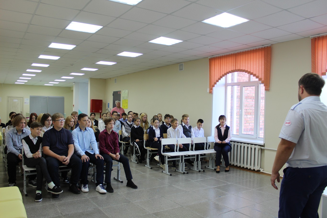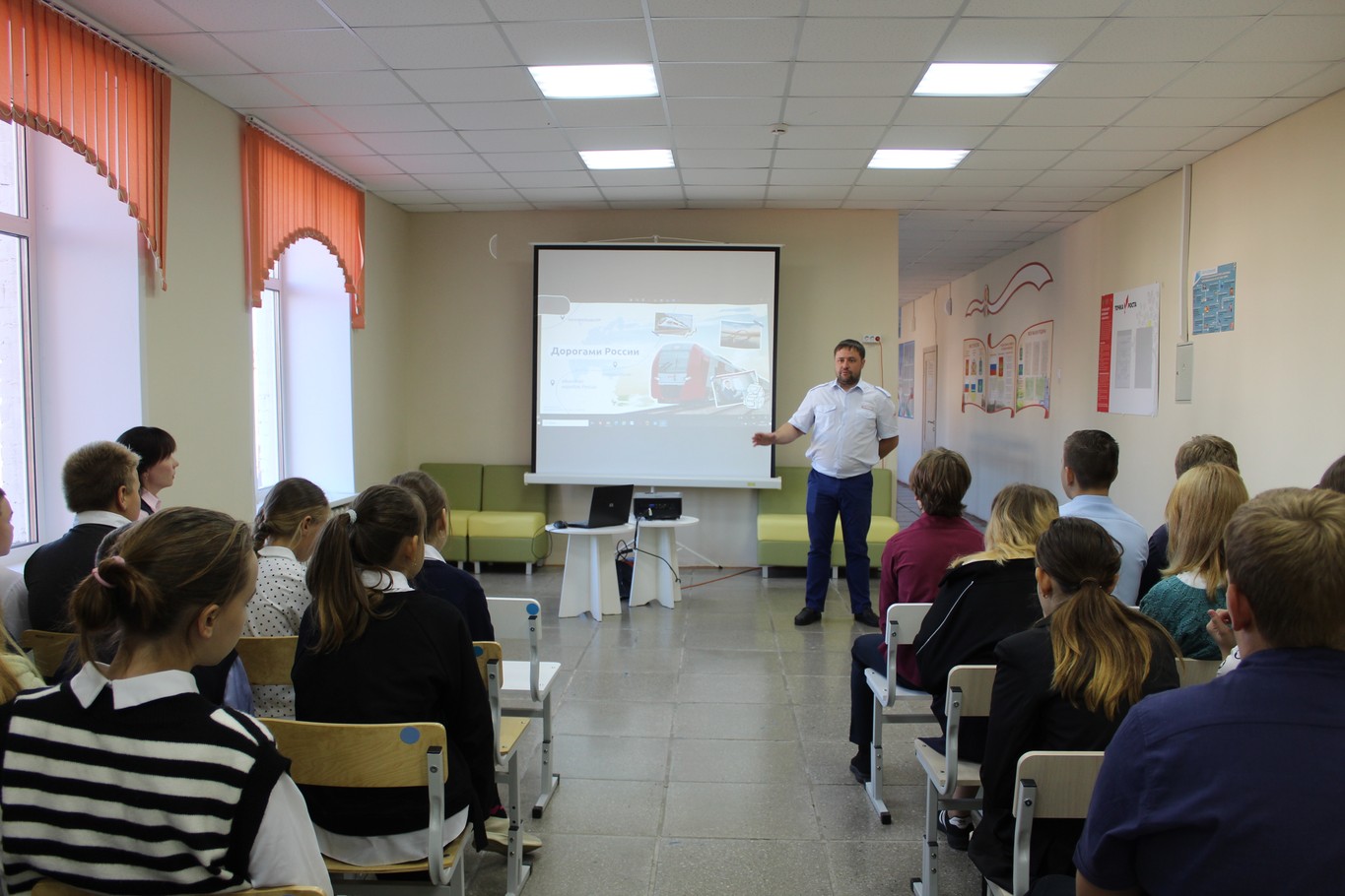 16.09.2024 года в рамках внеурочного занятия «Разговоры о важном» на тему «Дорогами России» и проекта «Классные встречи» обучающиеся с 5 по 9 классы МКОУ Аксарихинская СОШ встретились с машинистом электровоза 2 класса Свердловской железной дороги Осиповым Антоном Юрьевичем.