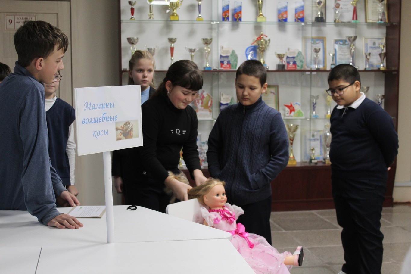 А на станции "Мамины волшебные косы" юные стилисты творили чудеса, создавая прически для кукол.