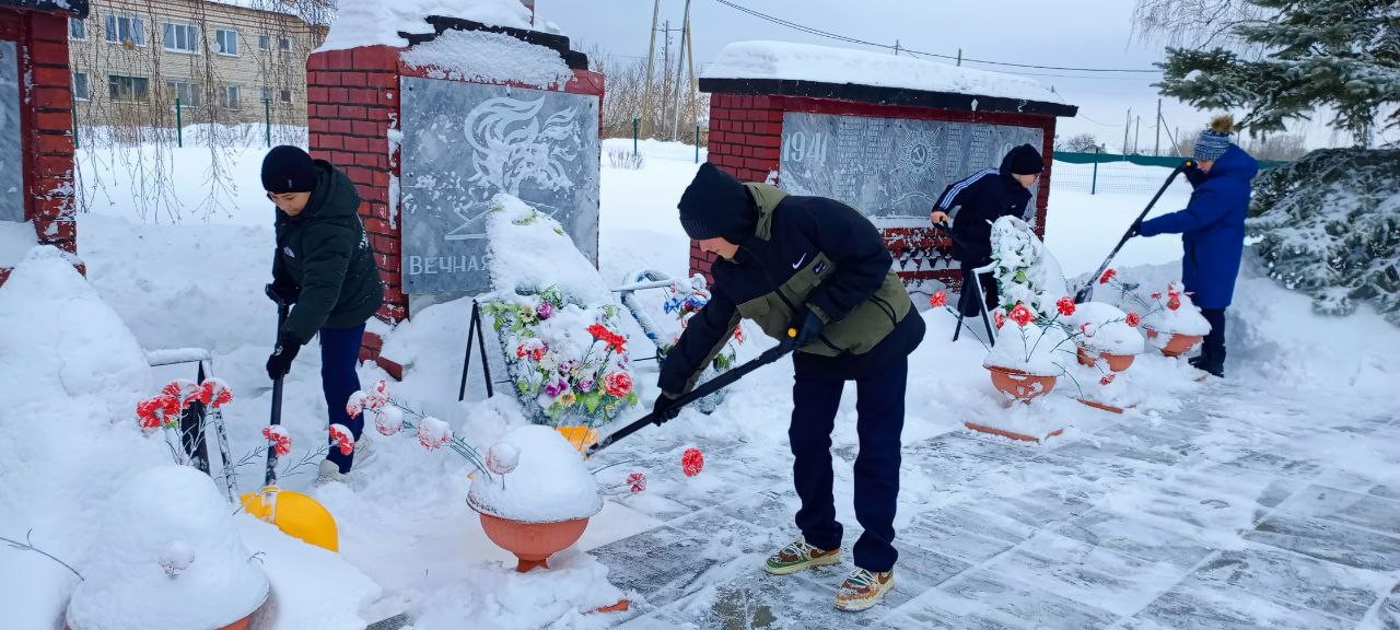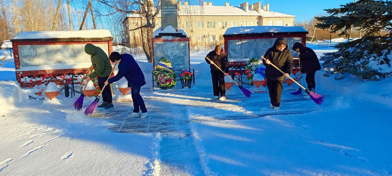 Ребята очистили монумент от снега и наледи, привели в порядок территорию вокруг него. Для них это не просто уборка, а дань памяти и благодарности тем, кто отдал свои жизни за мирное небо над головой.
